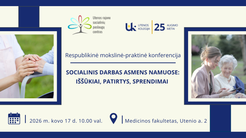 2026 m. kovo 17 d. 10.00 val. Elektroninio mokymo centro salėje (Medicinos fakultetas, Utenio a. 2) vyks respublikinė mokslinė-praktinė konferencija „Socialinės paslaugos asmens namuose: iššūkiai, patirtys, sprendimai“. Kviečiame registruotis. Programa.
